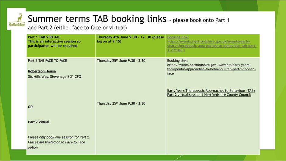 All EY settings/providers are welcome to attend.  Due to ratio’s, we know it is often difficult to be available, so a selection of different times are scheduled to allow as many providers as possible to attend.